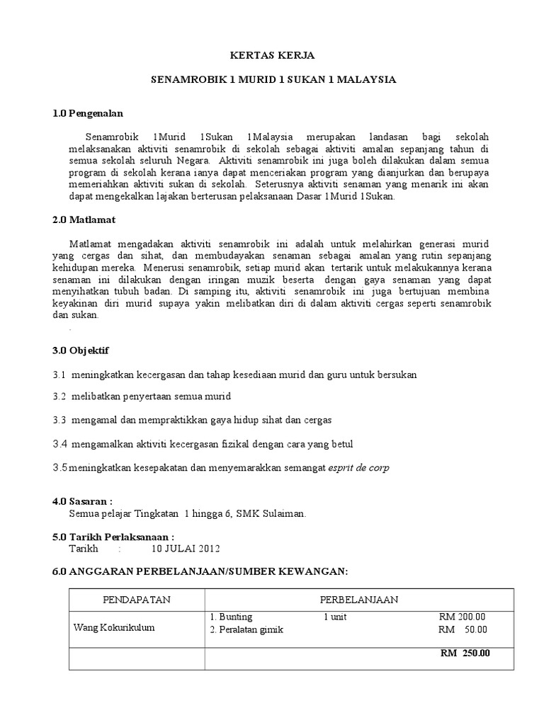 Kertas Cadangan Senamrobik Sempena Hari Sukan Negara By Iza Issuu