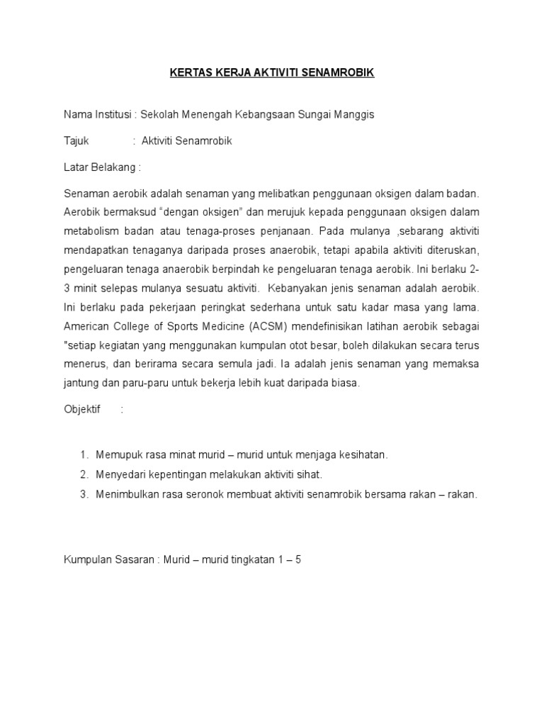 Kertas Kerja Pertandingan Senamrobik Pdf